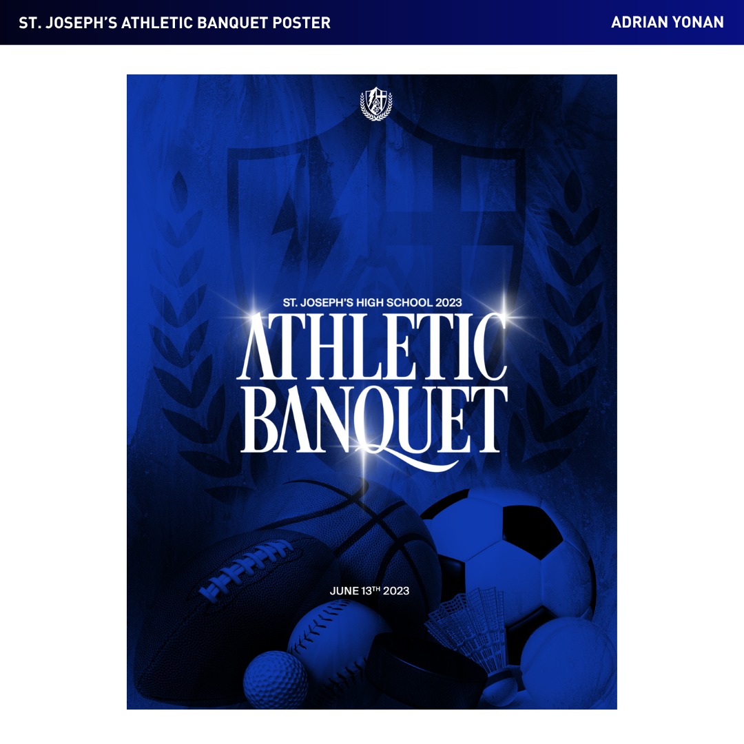 During my time at St. Joseph's Catholic High School, I delved into the fundamentals of Graphic Design through the Visual Art & Graphic Design department. The school provided me with numerous chances to apply my skills in various projects, witnessing the fruition of my designs. This journey has been a rich learning experience, allowing me to experiment with diverse design approaches and expand my knowledge base. The range of projects I undertook for the school, including posters, apparel, logos, and visual identities, has not only honed my design skills but also enhanced my communication abilities across different audiences.
